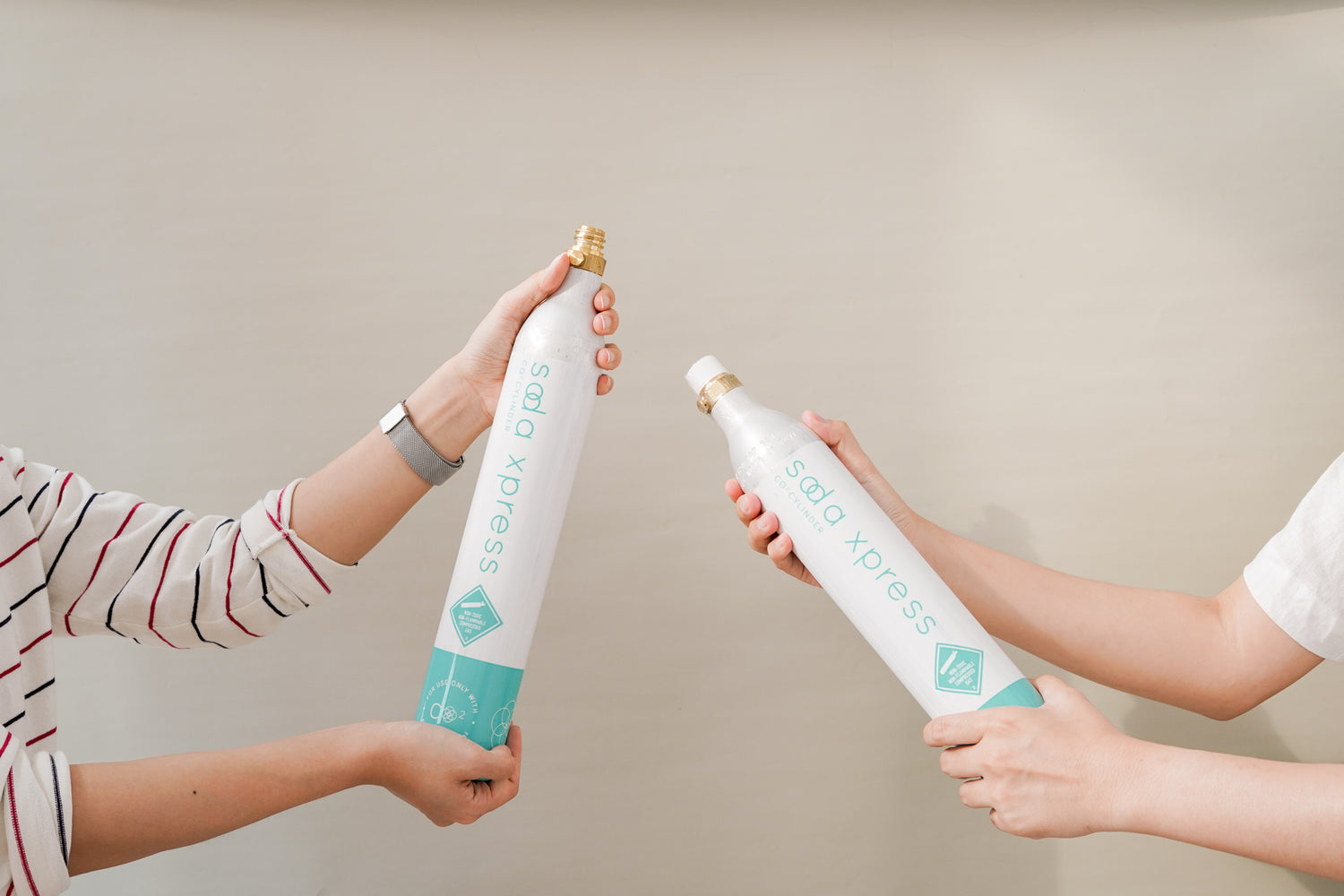 Purchase a 1-to-1 refilled cylinder at sodaxpress.com, or selected Tealive outlets.